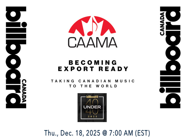 CAAMA International Marketplace in collaboration with Billboard Canada presents BECOMING EXPORT READY – Taking Canadian Music to the World. Recorded November 20, 2025 at Billboard Canada – 40 Under 40. Produced by CAAMA in collaboration with Billboard Canada.
